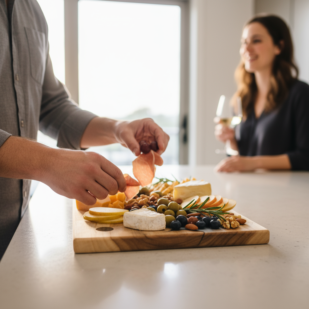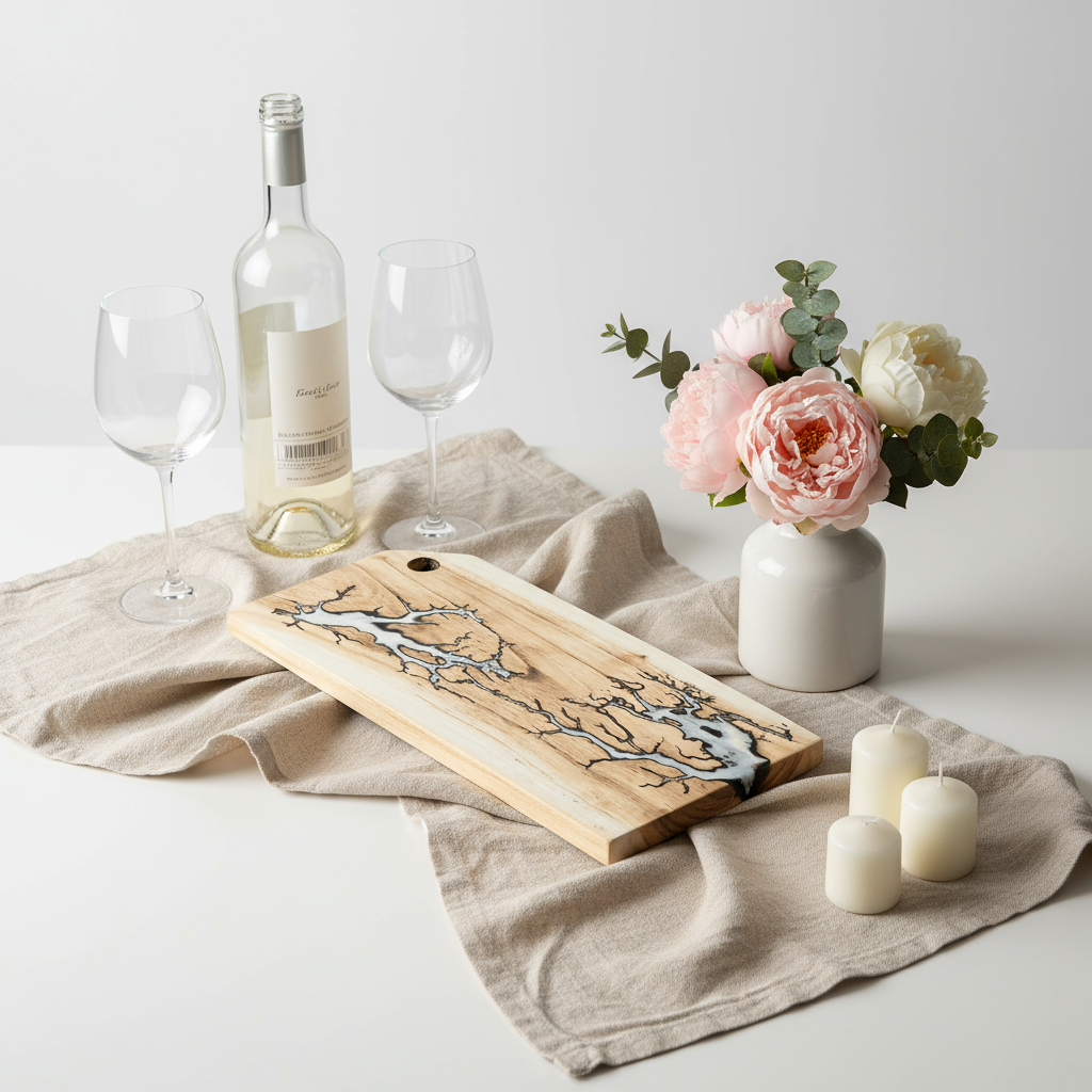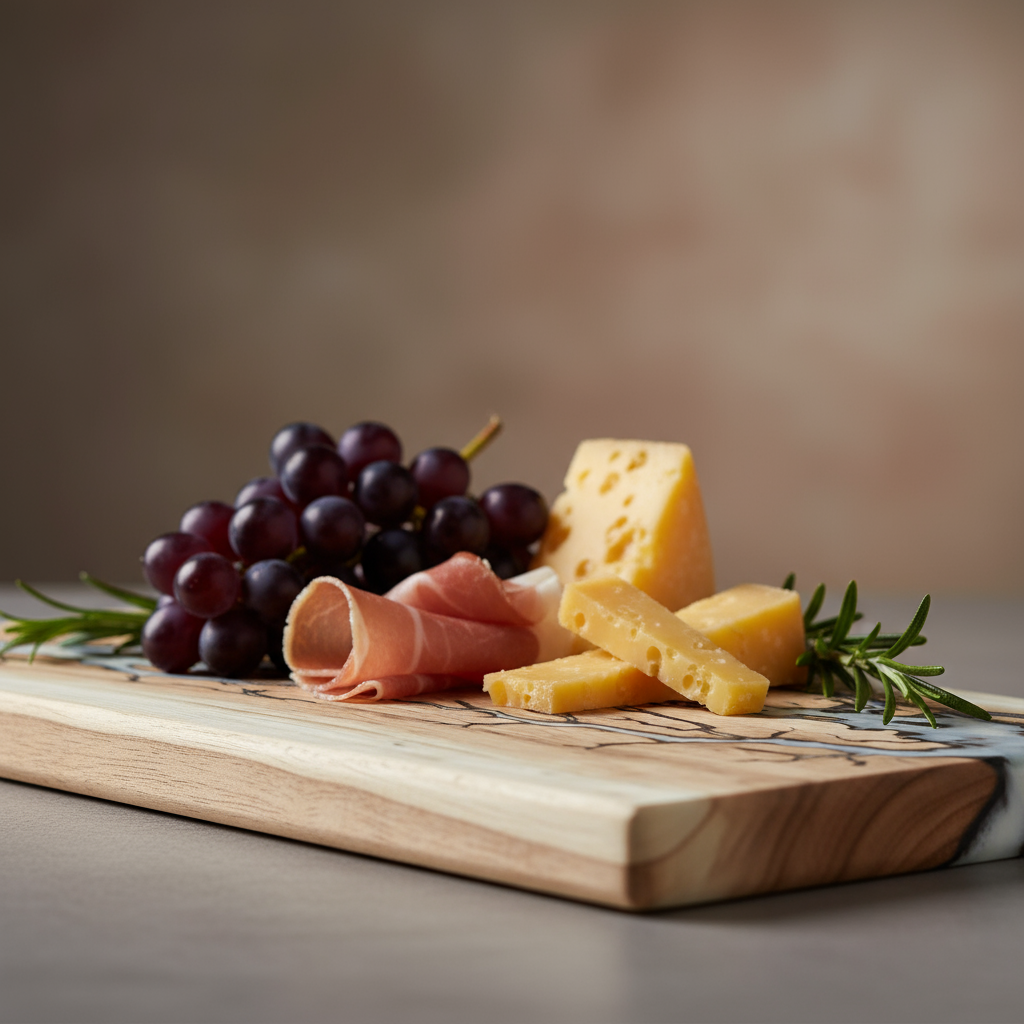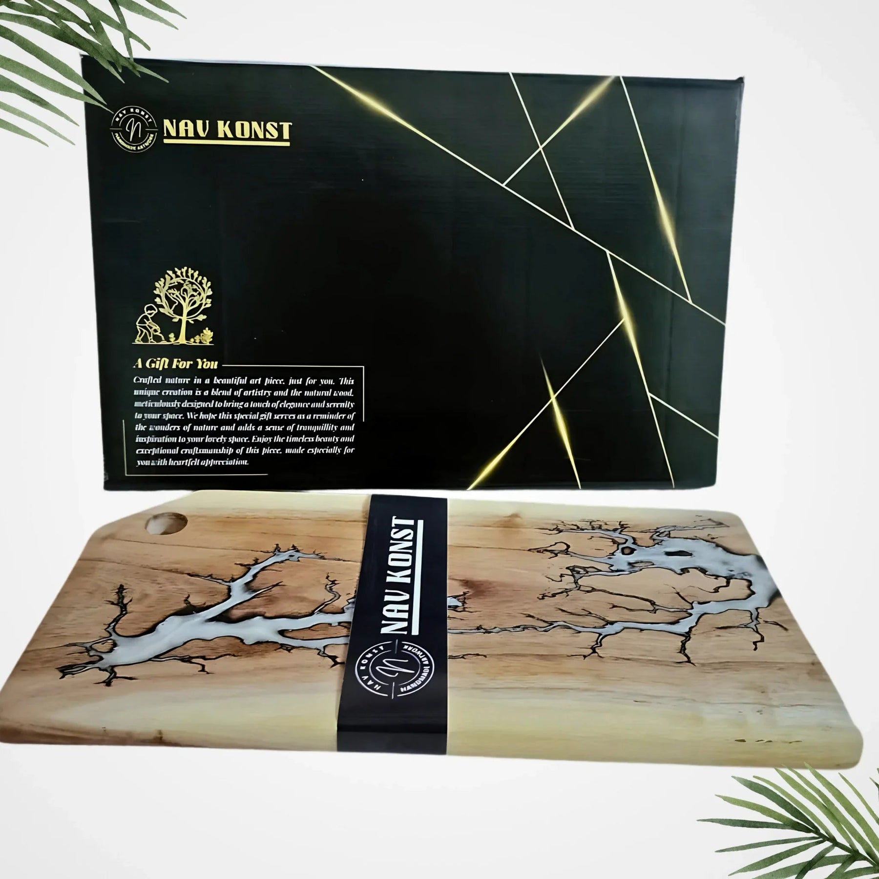 Acacia Charcuterie Board 16×8 – Arctic White Pearl Resin Serving Platter | Nav Konst Handmade Cheese Board