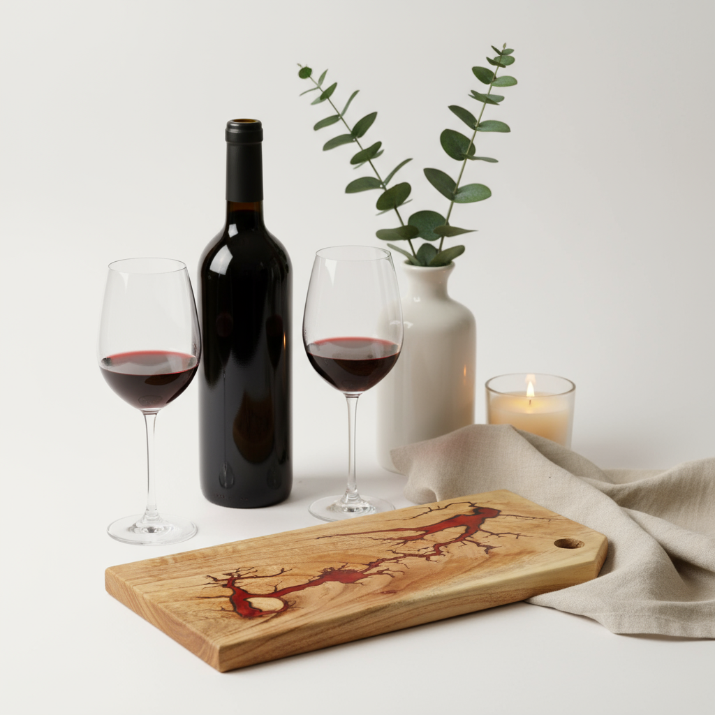 Red Epoxy Charcuterie Board 16×8 – Handmade Resin Wood Serving Platter | Nav Konst Acacia Cheese Board