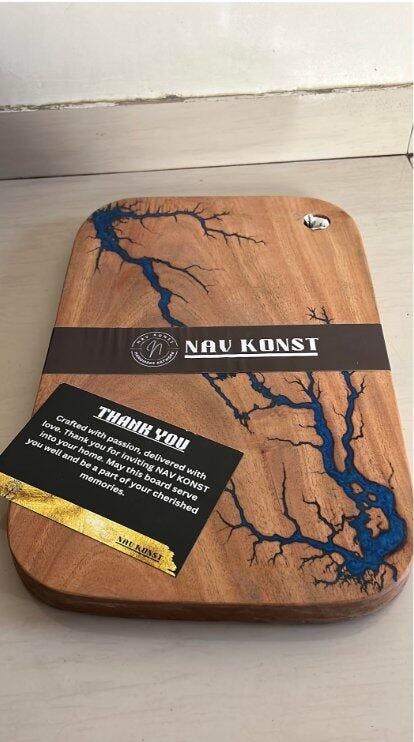 Perfect for weddings, housewarmings, or anyone who appreciates bold, handcrafted design. View our resin board selection.